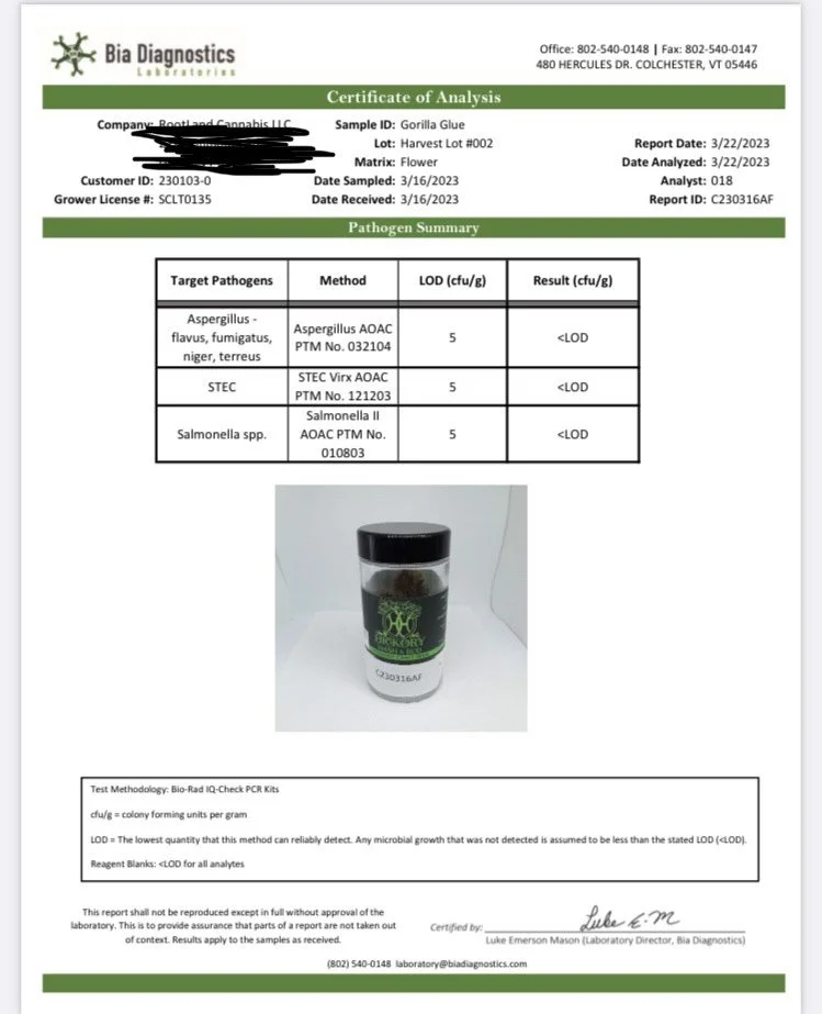 Harvest lot 2. GORILLA glue Test results